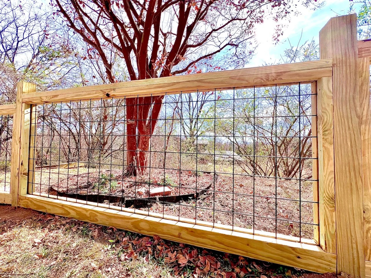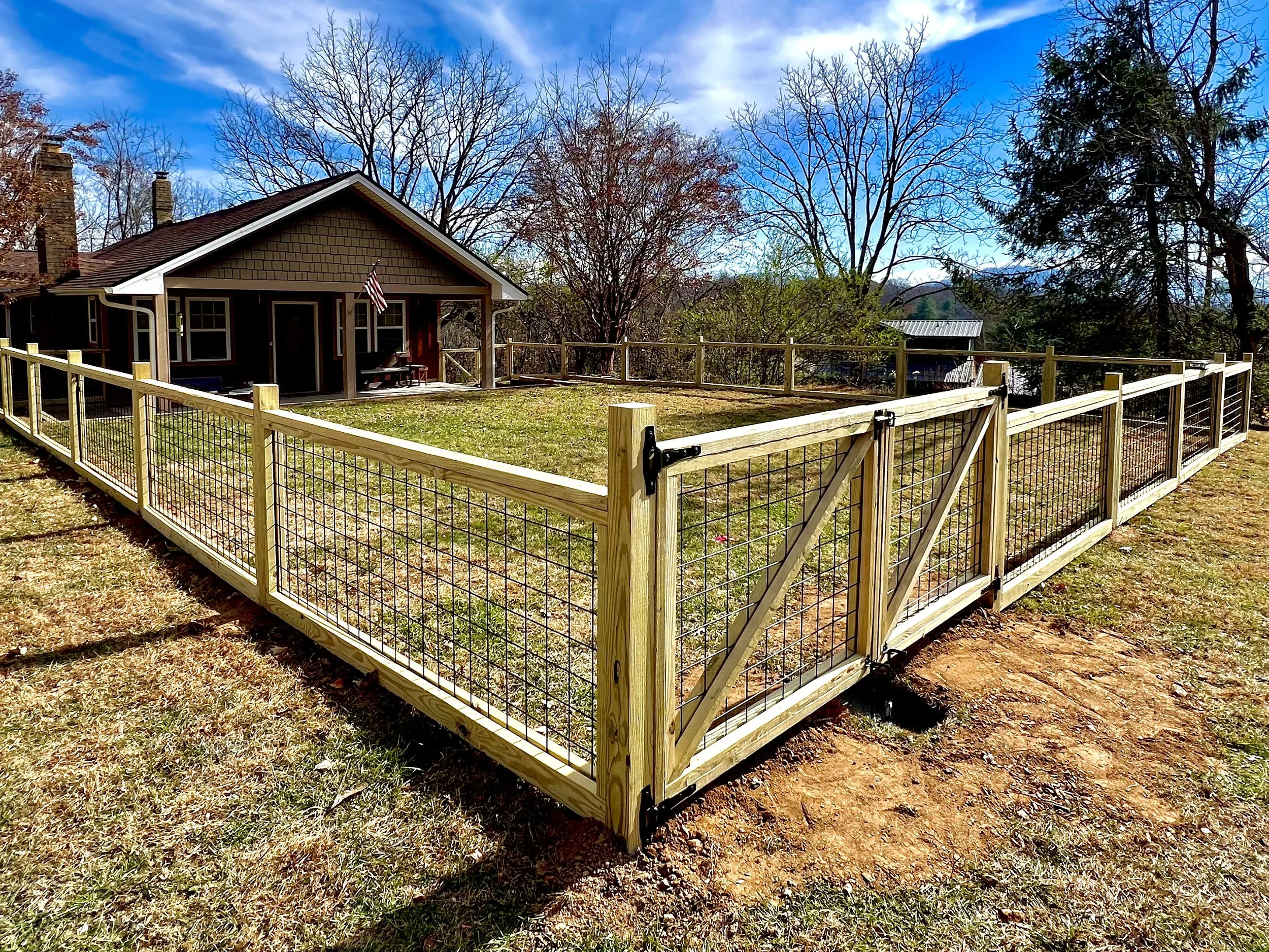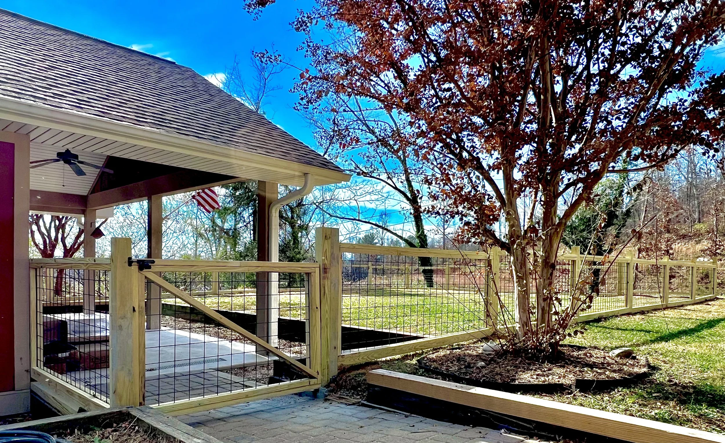 We were hired to build this 170 lineal foot hogwire fence for a client that needed yard space for his two small dogs at his newly purchased home. We installed three gates for multiple access points, with a large double gate over eight feet wide at the end of the yard to allow for a moving truck and appliance deliveries to be brought right up to the front door.