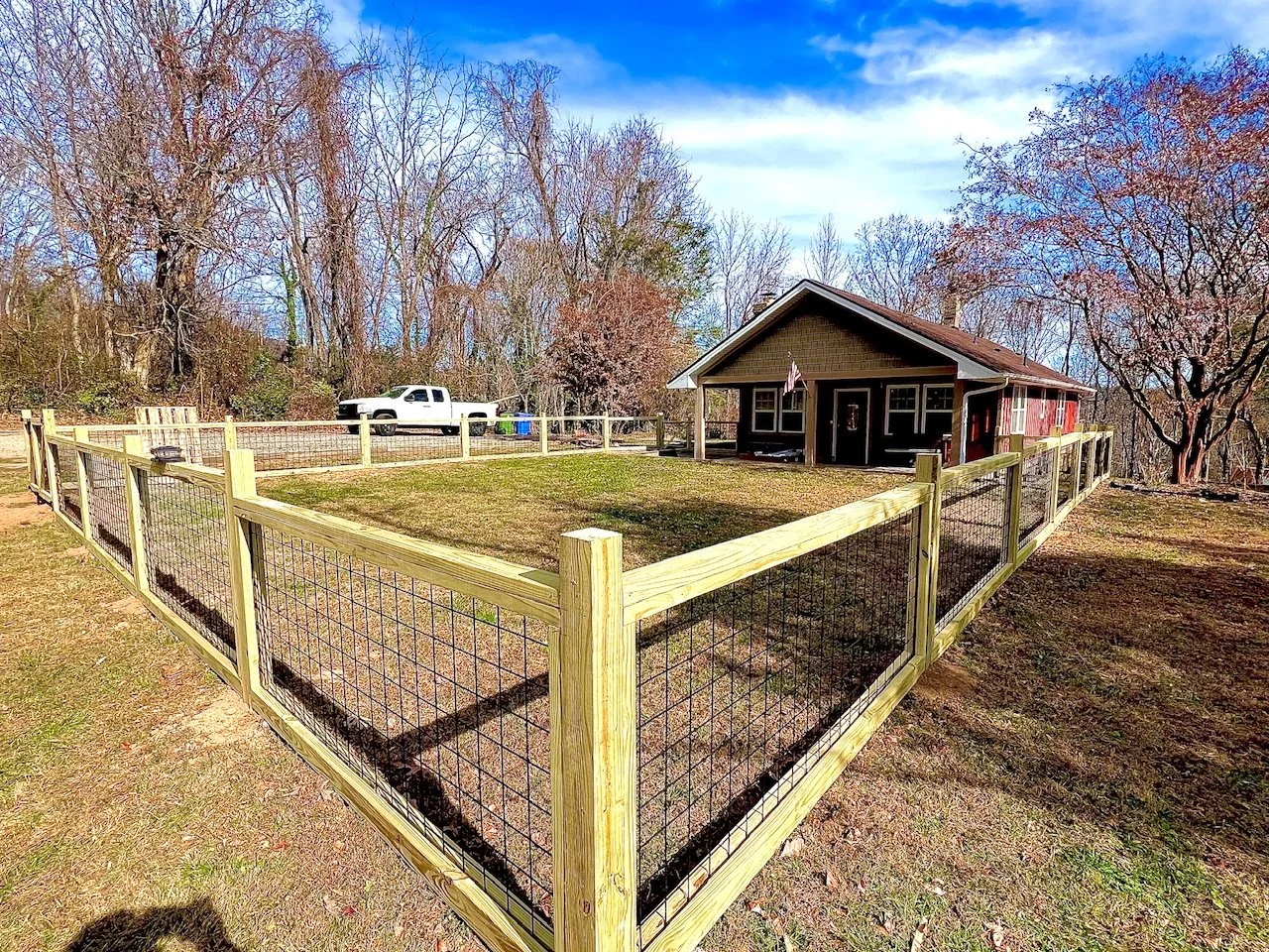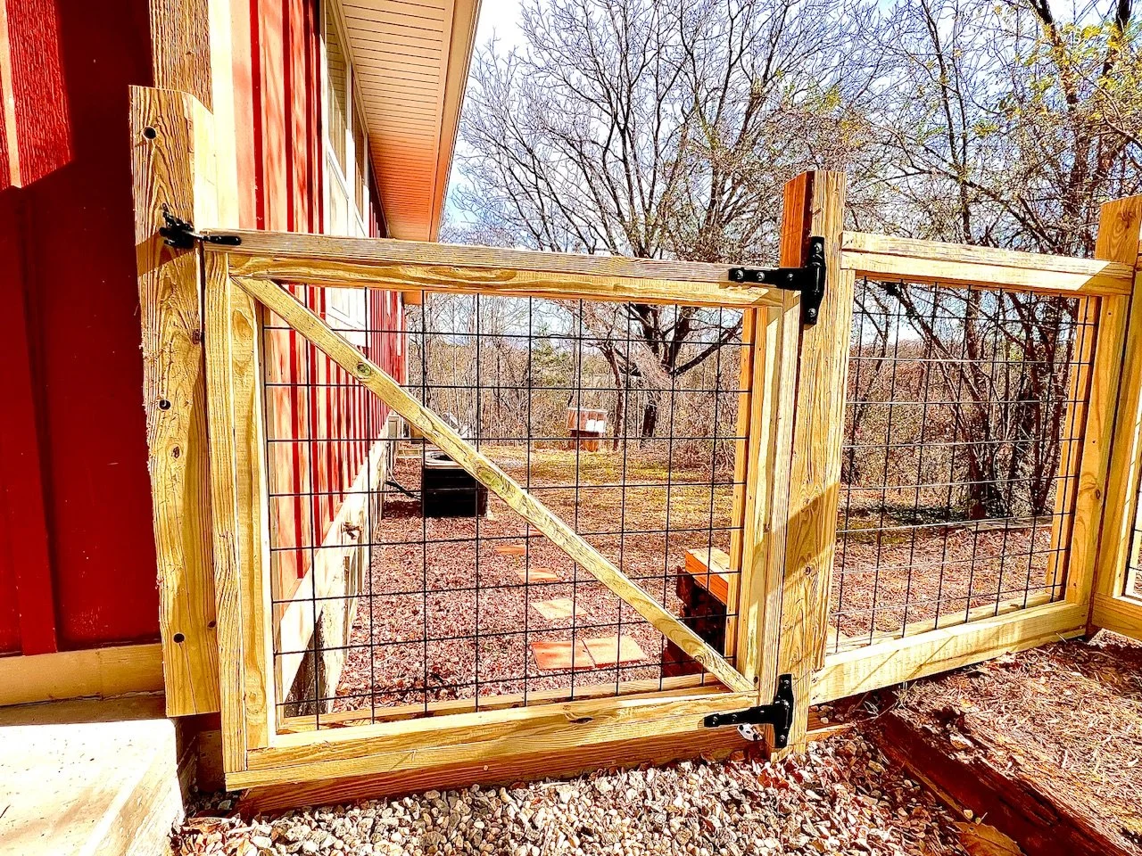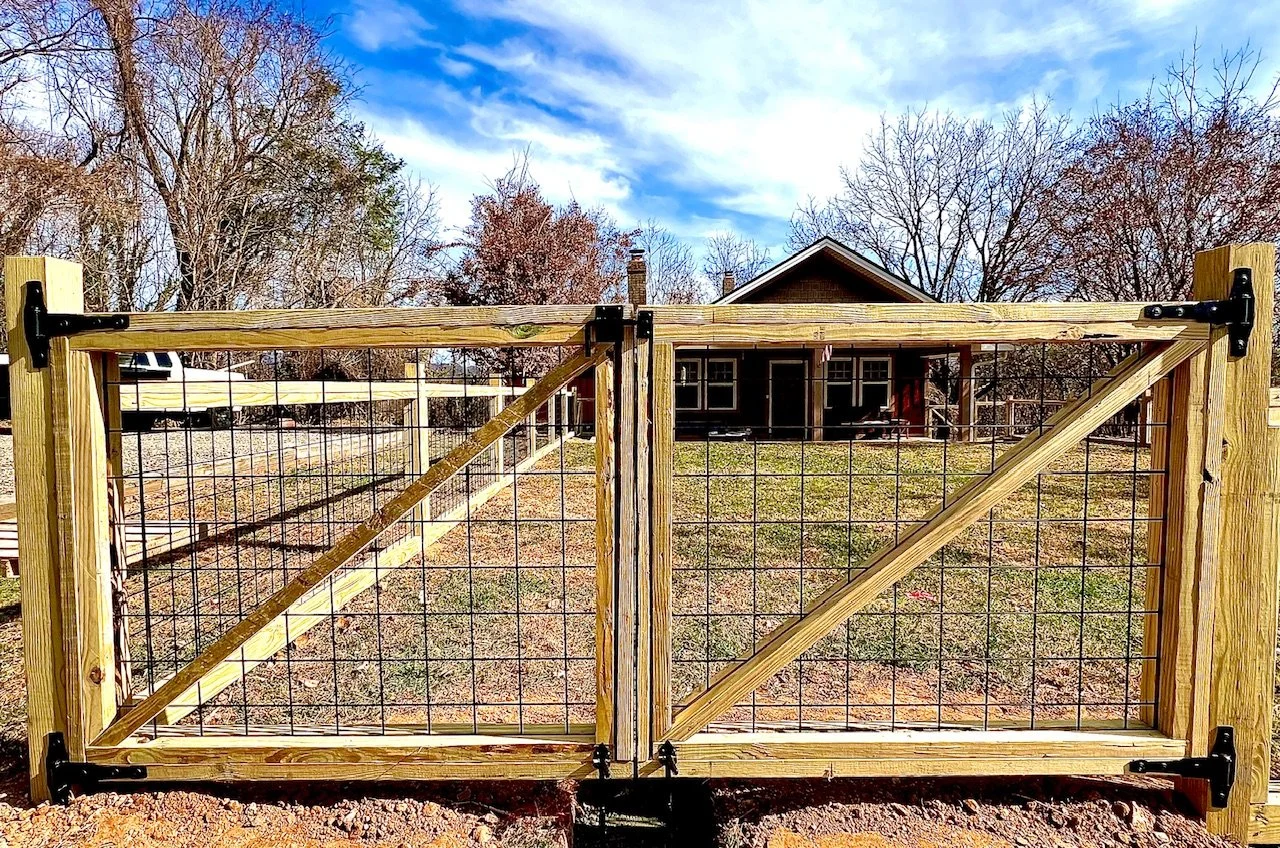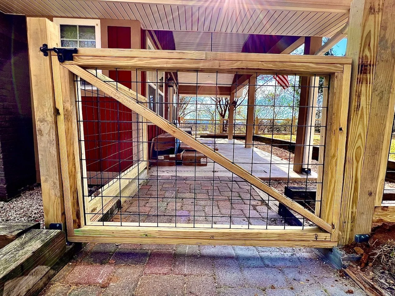 We were hired to build this 170 lineal foot hogwire fence for a client that needed yard space for his two small dogs at his newly purchased home. We installed three gates for multiple access points, with a large double gate over eight feet wide at the end of the yard to allow for a moving truck and appliance deliveries to be brought right up to the front door.